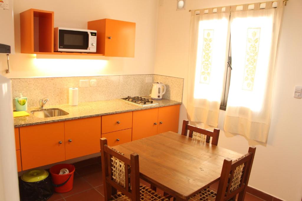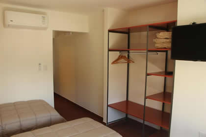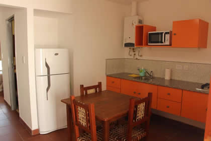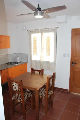 Hasta tres personas, ubicado en planta alta, se accede por una cómoda escalera. El dormitorio puede estar equipado con una cama matrimonial y una cama single o tres camas singles. El departamento cuenta con aire acondicionado frío-calor, TV pantalla plana por cable, WIFI, ropa de cama y toallones, baño completo con ducha, cocina equipada con heladera, anafe a gas de dos hornallas, microondas, pava eléctrica, elementos de cocina, vajilla y ventilador de techo. Se accede por una amplia terraza.